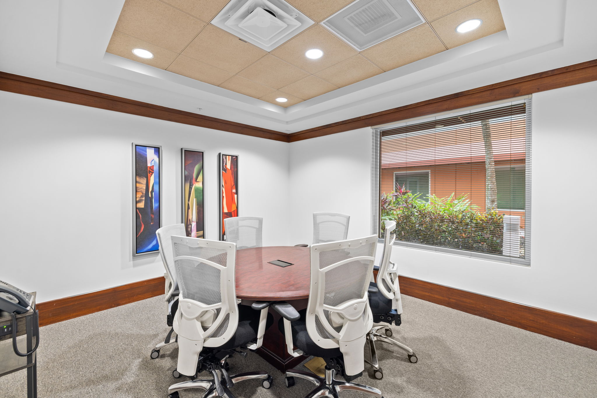 Our small conference room is off of our lobby and has a round table with 6 executive chairs. The office is equipped with a VOIP phone with conferencing capabilities, and designated Wi-Fi is included for your convenience. Each office also has its own thermostat, allowing you to control the temperature to your comfort. The space is professionally decorated to create a welcoming and polished environment for both you and your clients.